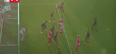第9分钟,柏林联合左侧角球机会,球罚向禁区,后点奎菲尔德接到队友头球摆渡,再将球顶向门前,安萨头球接力破门。随后VAR介入,经过划线判定,主裁判认为安萨越位,进球无效。赛后,柏林联主帅鲍姆加特向记者抱怨:“第一个球应该算作进球。仅仅因为5毫米的差距就判越位——我们这里谈及的真的是5毫米——有些人简直是疯了。”